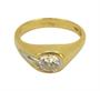 Prsten ze žlutého zlata ryzosti 585/1000 se zirkonem. Celková hmotnost prstenu je 3,60 g. Velikost 53