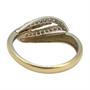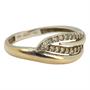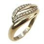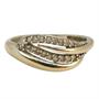 Prsten z bílého zlata ve tvaru vlny zdobená dvěma řadami čirých zirkonů, zlato ryzost 585/1000. Velikost 51,5. Hmotnost 1,72 g.
