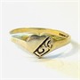 Decentní prsten s hlavicí ve tvaru srdce, jehož polovina je zdobena gravírováním. Britská zlatnická práce z roku 1991.