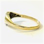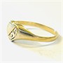 Zhotoveno ze žlutého 9 karátového zlata, tj. o ryzosti 375/1000; britské puncovní značení (Birmingham) zevnitř šíny. Hmotnost 1,06 g, velikost 49,5, velikost 49,5, šířka hlavice 6 mm. V zachovalém stavu.