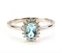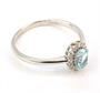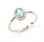 Prsten z bílého zlata ryzosti 750/1000 zdobí přírodní topaz hmotnosti 0,40 ct a 16 drobných briliantů celkové hmotnosti 0,10 ct. Velikost prstenu 56-57, celková hmotnost 2,19 g.