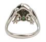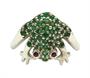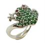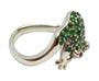 Prsten je zhotoven z bílého zlata ryzosti 585/1000 a posázen smaragdy a rubíny. Hmotu šperku tvoří tělo žáby natahující nohy do obroučky. Celková váha je 6.14 g a vnitřní obvod 54 mm. Kvalitní zlatnická práce s unikátním motivem.
