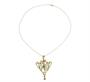 Secesní kolier s florálním motivem ze zlata ryzosti 585/1000 zdobený diamanty briliantového brusu (o celkové hmotnosti 1,30 ct) a centrálním smaragdem. Celková hmotnost 9,14 g. Délka řetízku 43 cm. Rozměry závěsu 5,5 x 3,5 cm.