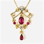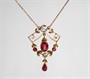 181276Zlatý secesní náhrdelník s rubíny a leukosafíry