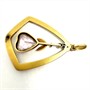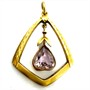 Velmi půvabný zlatý závěs zhotovený v první polovině 20.století v secesním stylu. Šperk zdobí kinetický zlatý ověs s fazetově vybroušeným růženínem do tvaru srdce. Šperk je vyroben ze 14ti karátového zlata (585/1000), o celkové váze 1,51 g. Povrch šperku zdobí velmi jemné matování. Rozměry cca 3 x 2 cm. Výborný stav. Řetízek není součástí prodeje.