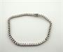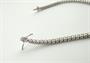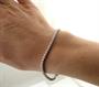 Osmnáctikarátové bílé zlato, přírodní diamanty. Ryzost Au 750/1000, celková hmotnost 12,75 g. Náramek z osmnáctikarátového bílého zlata, tzv. tenisový, s 65 zasazenými přírodními diamanty moderního briliantového brusu o celkové váze 1,30 ct, barva G a čistota Si. Náramek, jenž je ve výborném stavu, má bezpečností pojistku u zapínání. Značeno: český punc kohout a 1,30 ct. Evropa, přelom 20. a 21. století. Délka náramku 185 mm.