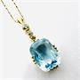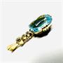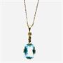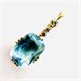 Půvabný, jemný závěs ze 14ti karátového zlata (585/1000). Šperk zdobí tři brilianty starého brusu a transparentní, blankytně modrý kámen fazetového brusu, uchycen do krapen. Celková váha 2,38 g. Délka 2,6 cm. Výborný stav. Řetízek není součástí prodeje.