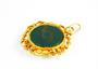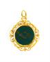 Historizující přívěsek ze zlata ryzosti 585/1000, punc liška osazený krásně probarveným heliotropem c červenými žilkami. Průměr šperku je asi 2,5 cm. Celková hmotnost 4,62 g.