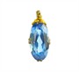Závěs vyrobený ze zlata osazený syntetickým spinelem. Zlato je podlimitní ryzosti 246/1000. Rozměry 2,5 x 1,1 cm. Celková hmotnost 2,76 g.